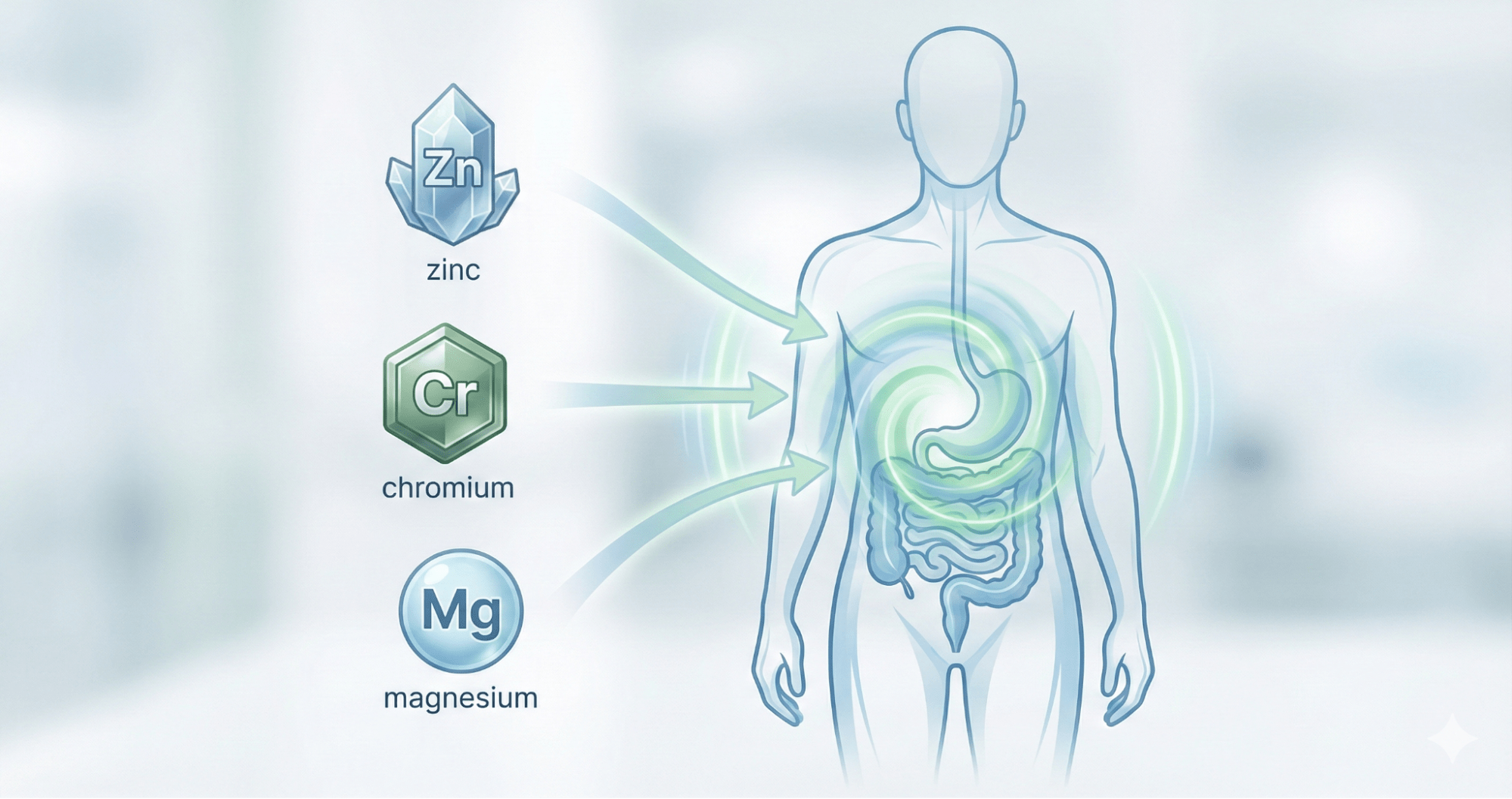 血糖値を下げるには、糖の代謝機能を正常化させる必要があります。そのために必須なのが「亜鉛・クロム・マグネシウム」です。これらはインスリンの生成、分泌、そして細胞への糖の取り込みの各ステップで重要な役割を果たします。