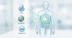クロムはインスリンの「鍵穴」を助ける役割をします。糖が細胞に取り込まれるのをスムーズにすることで、血糖値を下げるサポートをします。多くの研究でその効果が報告されている科学的根拠のある成分です。