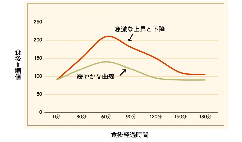 血糖値を急激に下げるのではなく、大切なのは食後の上がり方を”ゆるやかなカーブ”に整えること。