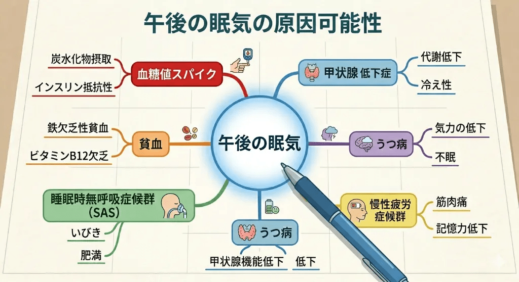 午後の眠気・だるさの原因は、血糖値スパイクだけではありません。