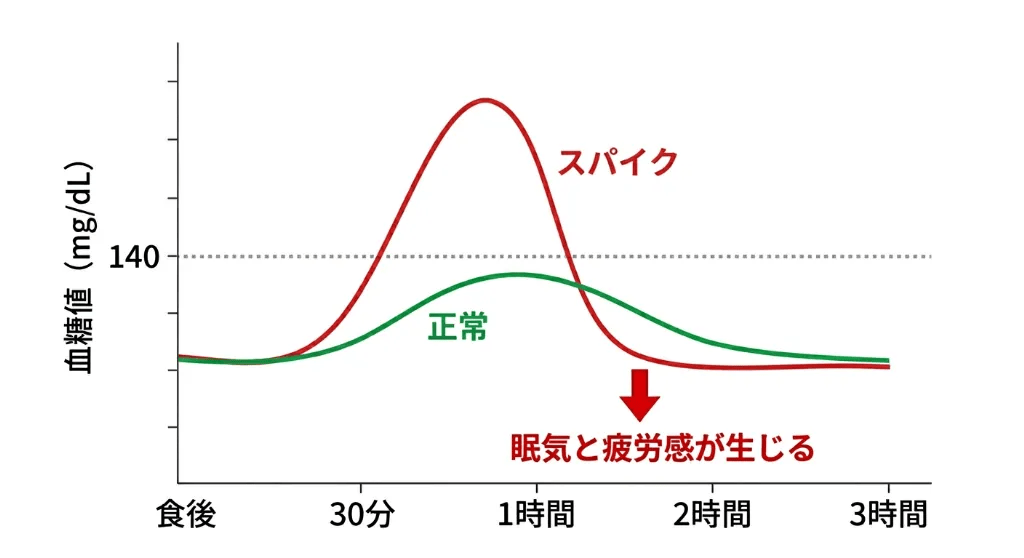 「食後の眠気は、血糖値スパイクが原因かもしれません」