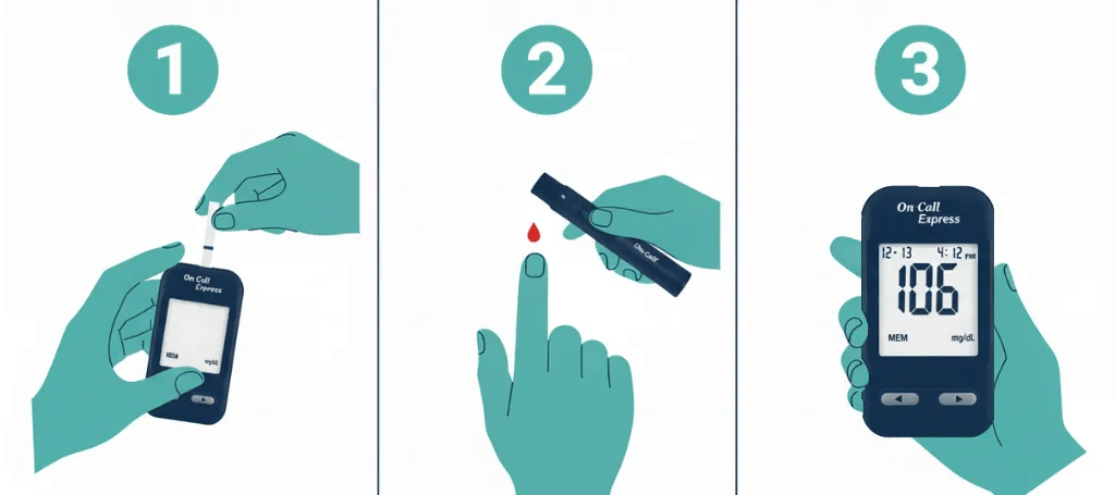 A. いいえ、簡単です。たった3ステップで測定できます:①センサーを測定器に挿入、②穿刺器で指先から少量の血液を採取、③3秒で結果表示。毎日続けても苦痛になりません。付属の記録シートに日付、時間(食前/食後)、測定値、食事内容を記録し、通院時に医師に見せてください。医師が「よく頑張ってますね」と具体的にアドバイスしてくれるようになります。