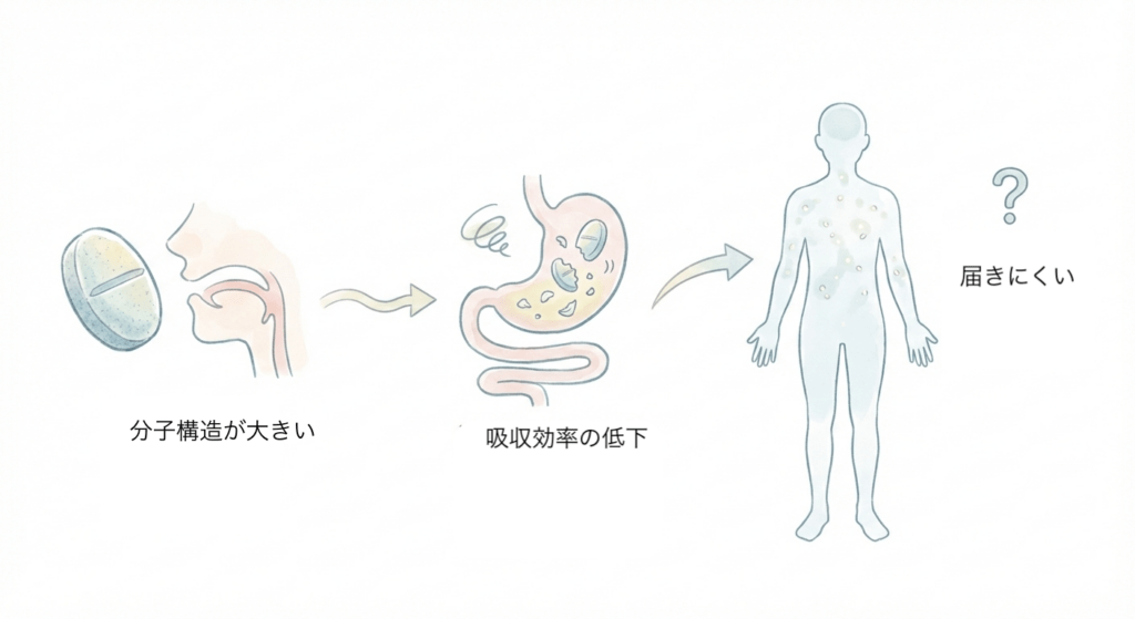 • サプリ(そのもの):成分そのものが活かされない可能性がある