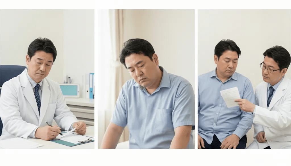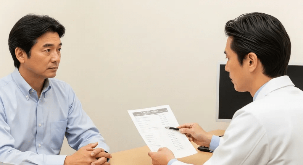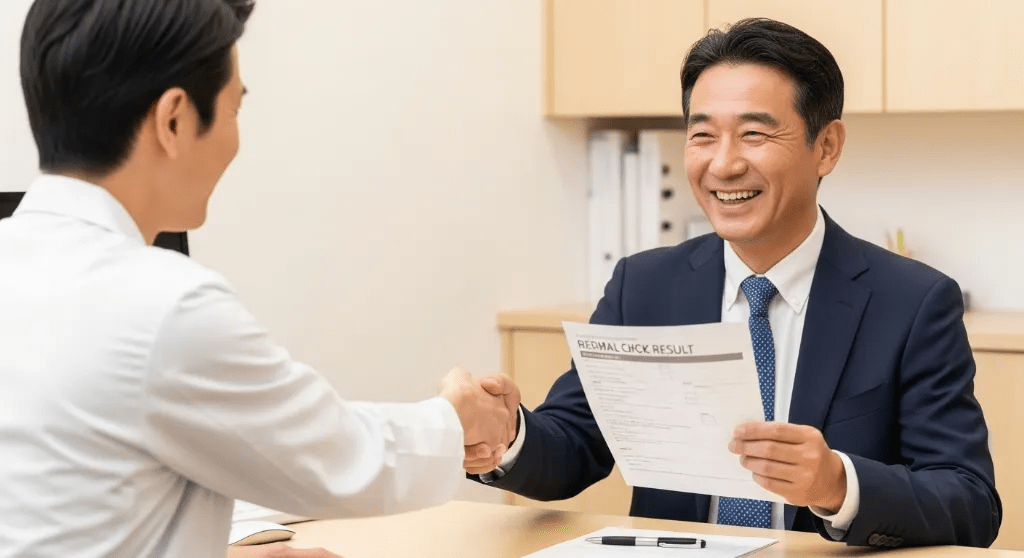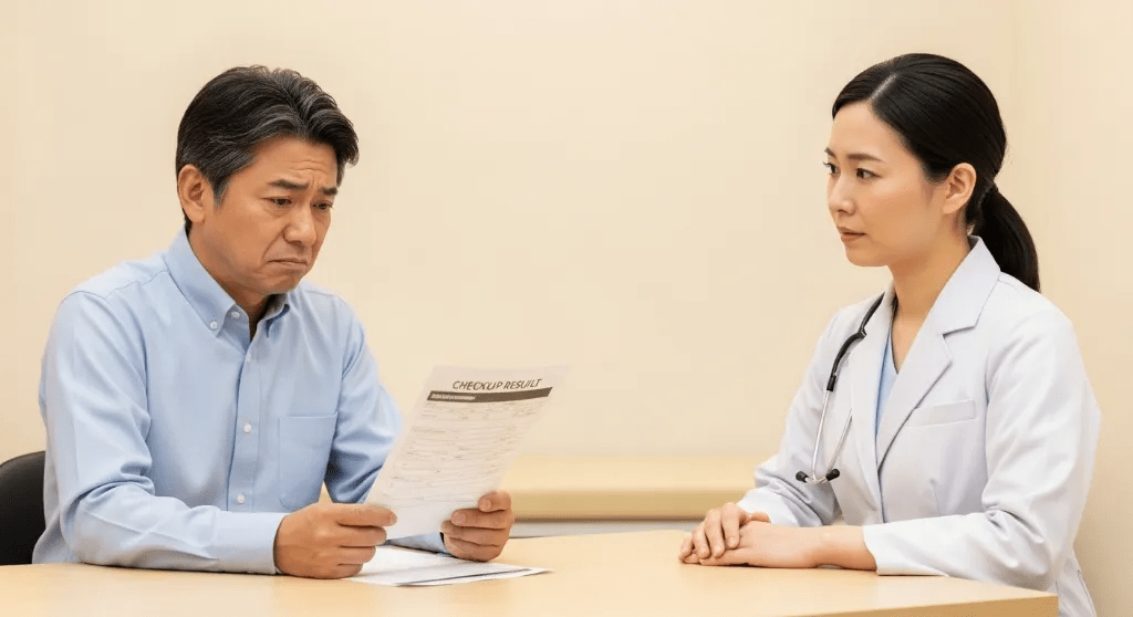 3ヶ月後:健康診断で数値が改善。医師が「おや、下がってますね」と驚く。