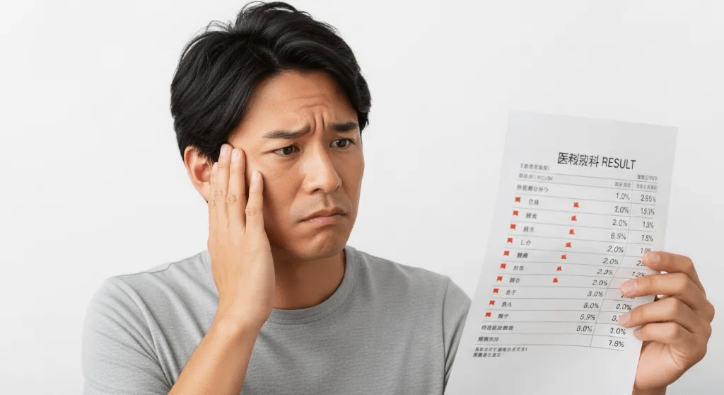 検査結果用紙を見ると、いくつかの数値が基準値を超えていた。