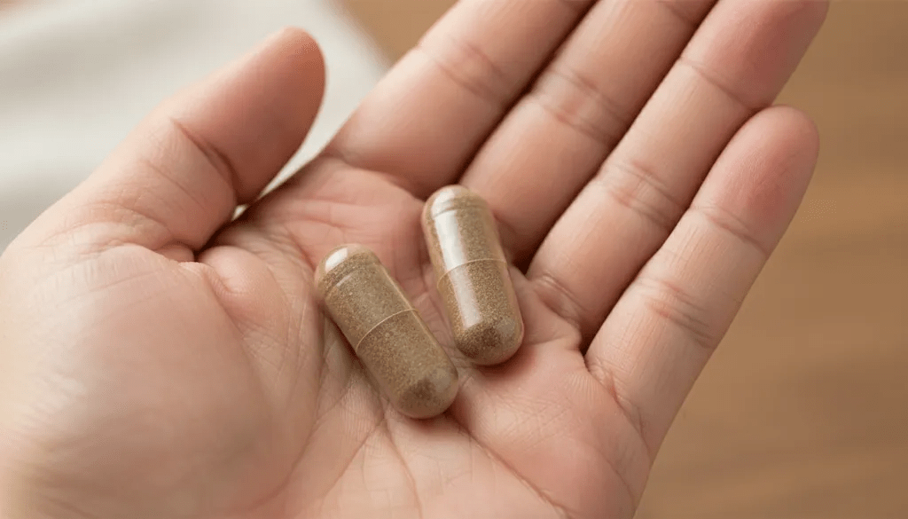 好きなとき(朝食後と夕食後のルーティン化がおすすめ)に1粒ずつ。水と一緒に飲むだけ。