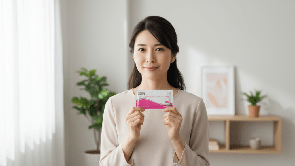 非常に簡単です。紙コップに尿を取り検査薬を浸して数分待つだけ。2本の線が出れば陽性です。日本語説明書付きで初めての方でも安心です。