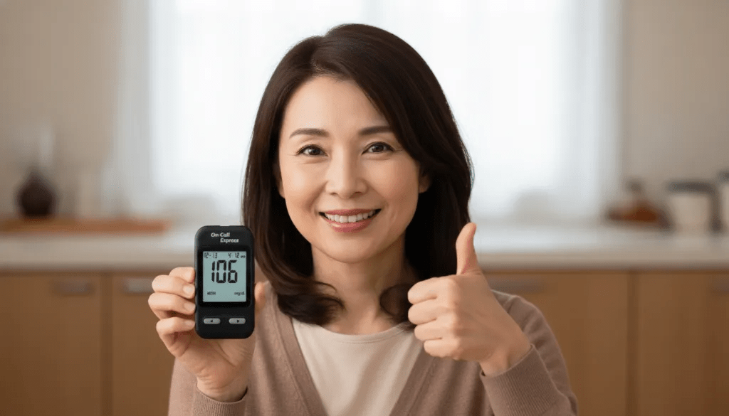 血糖値の変化を把握するには、1日3回の測定が推奨されます:朝の空腹時で今日のスタート地点を確認、食後1〜2時間で食事の影響を確認、就寝前で今日の総仕上げを確認。毎日測定することで「今日の食事は大丈夫だった」と確認でき、不安が解消されます。測定結果は付属の記録シートに記入し、通院時に医師に見せてください。