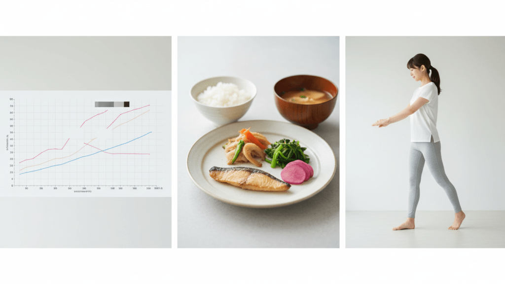 生活習慣の見直しが不可欠です。睡眠7時間以上、糖質を控えめに、週3回20分のウォーキング、BMIが高い場合は5〜10%の減量を目指してください。サプリ×生活習慣改善で体質を整えるイメージです。