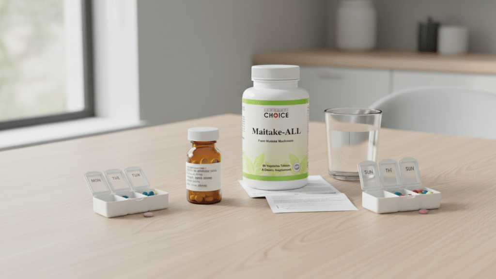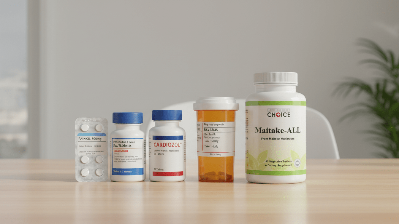 マイタケオールは医薬品ではないため、薬の効果を補完するサポート役としてご利用いただけます。