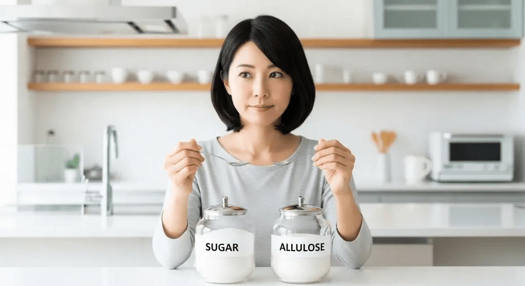 砂糖を摂ると血糖値が急上昇し、その後急降下する「血糖値スパイク」が起こります。このとき、午後2時や3時に強い眠気が襲う、頭がぼんやりして集中力が続かない、体がだるく疲れやすいといった症状が現れます。アルロースは血糖値上昇を緩やかにサポートするため、こうした血糖値スパイクを防ぐことに役立ちます。