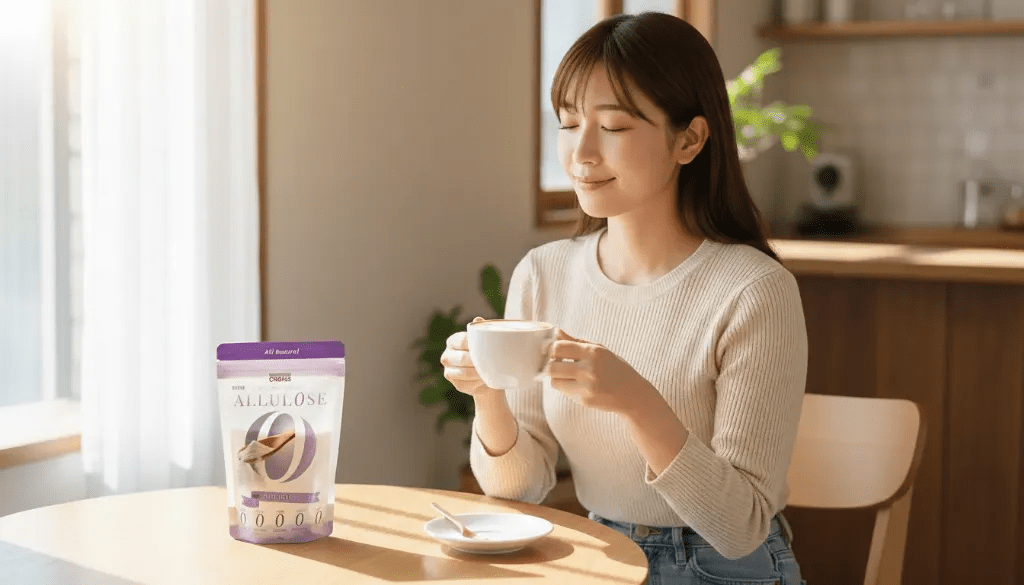 アルロースは血糖値上昇を緩やかにサポートし、カロリーゼロの特徴があります。血糖値スパイクを防ぐことで体への負担を軽減できます。ただし、アルロースはあくまで砂糖の代わりになる甘味料として日常の食生活でお使いいただくものです。血糖値が気になる方や健康上の不安がある方は、必ず医療機関にご相談ください。
