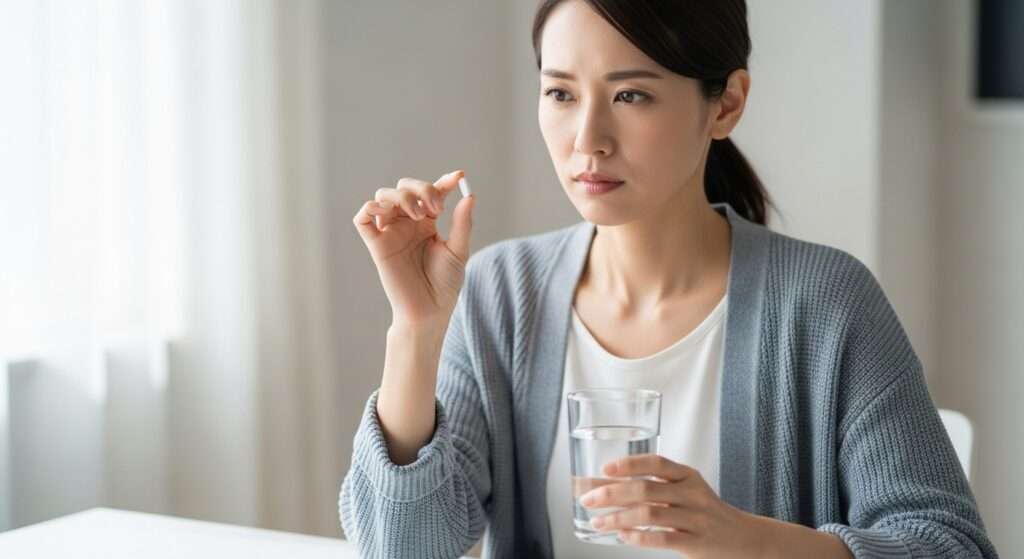 基本は1日1粒です。朝起きたときや就寝前など、飲み忘れにくいタイミングがおすすめです。「おかしいな」と感じたときは1日2粒に増やしてください。食前・食後の制限はありませんが、空腹時の方が吸収されやすいとされています。