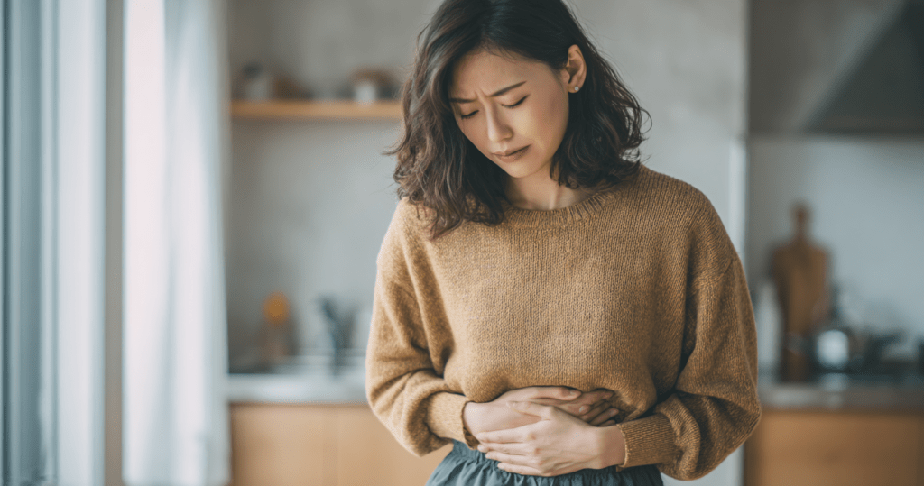 – 下腹部の痛みや圧迫感